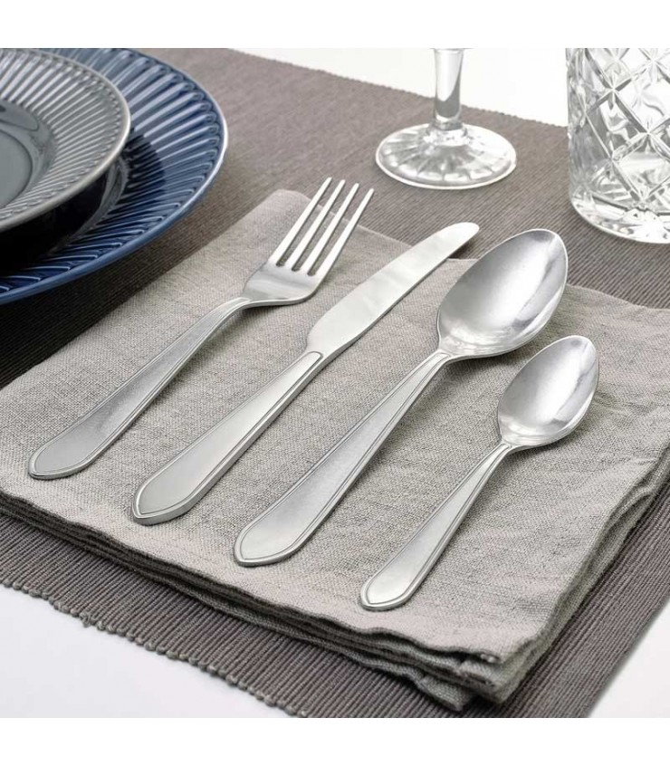 ۴ نفره ۱۶ پارچه شامل : ۴ عدد. قاشق غذاخوری ۴ عدد چنگال غذاخوری ۴ عدد کارد غذاخوری ۴ عدد قاشق چایخوری استیل ضد زنگ مات قابل استفاده در ماشین ظرفشویی