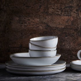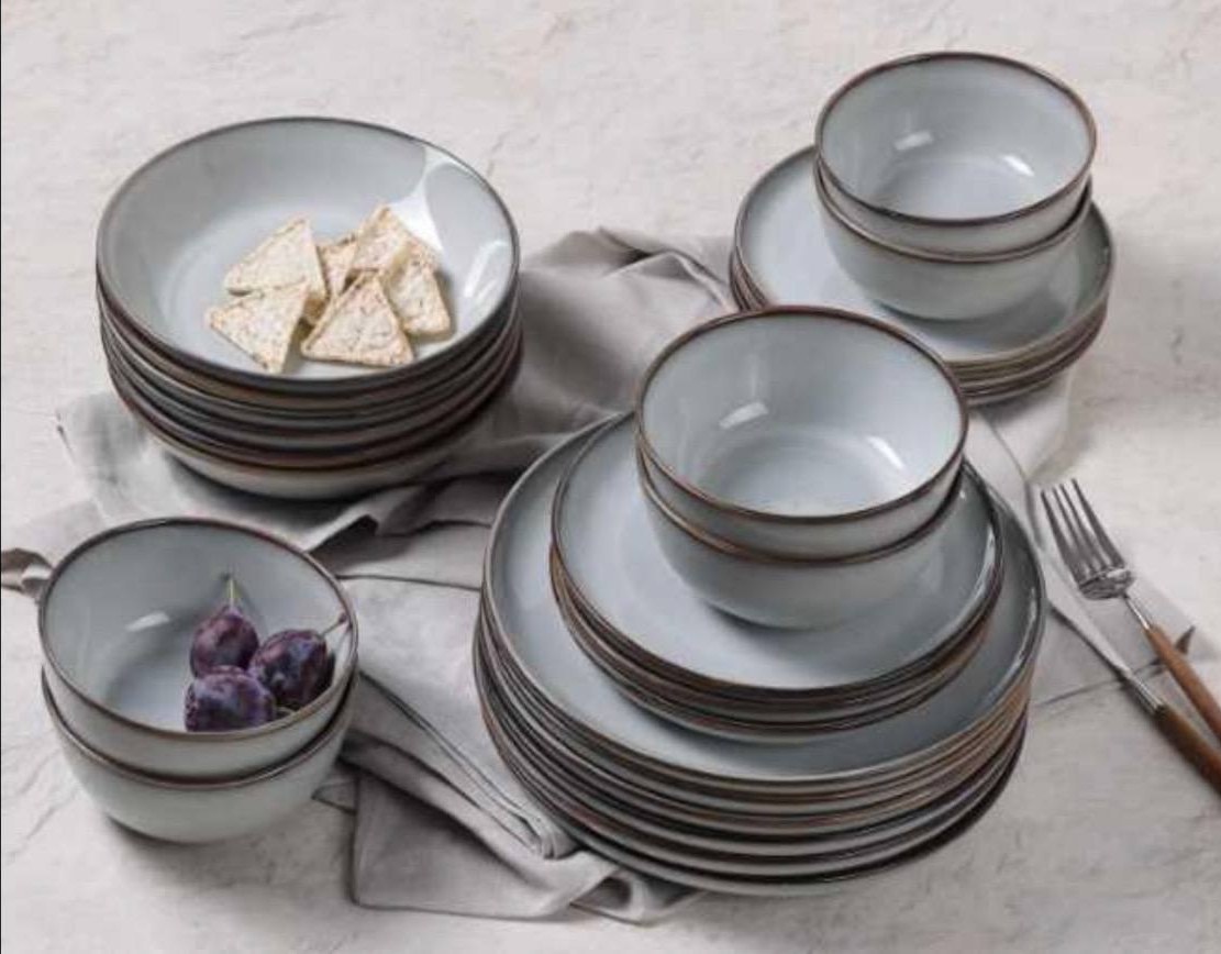 سرویس ۶ نفره ۱۸ پارچه ایکیا طرح روستیک رنگ خاکستری روشن با لبه های طلایی مایل به قهوه ای