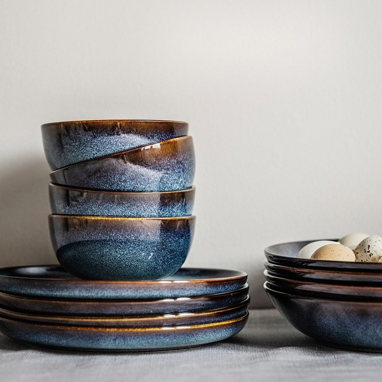 سرویس غذاخوری ۶ نفره ۱۸ پارچه طرح روستیک رنگ آبی اقیانوسی تیره با لبه های قهوه ای