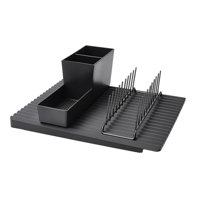 سرویس آبچکان ایکیا مدل RINNIG یک آبچکان مشکی رنگ است که می توانید آن را به صورت تک تک استفاده کرده یا همه سرویس را با هم در یک جا قرار دهید. جاقاشقی و جا بشقابی به تنهایی کاربرد دارد یا می تواند بر روی سینی خود سرویس سوار شود. ویژگی مهم این آبچگان به گونه اینست که اگر از سینی آن استفاده کنید آب سر ریز شده از ظروف را جمع کرده و به داخل سینک می ریزد.طراح این محصول « میکائیل اکسلسون» می باشد. سینی و جای قاشق و چنگال از پلاستیک تهیه شده و جای بشقابی آن از استیل با روکش پلاستیک پلی آمید است. در ضمن سینی آبچگان را می توانید از دو طرف استفاده کنید در یک حالت آب در سینی جمع می شود و سپس آن را خالی می کنید و در حالت دوم آب به سینک سرازیر می شود.